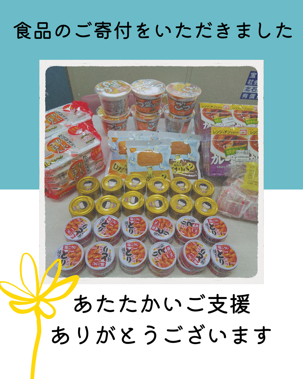 お寄せいただいた食品は、生活にお困りの世帯への支援に大切に活用させていただきます。あたたかいお気持ちとご支援に、心より感謝申し上げます。ありがとうございました。